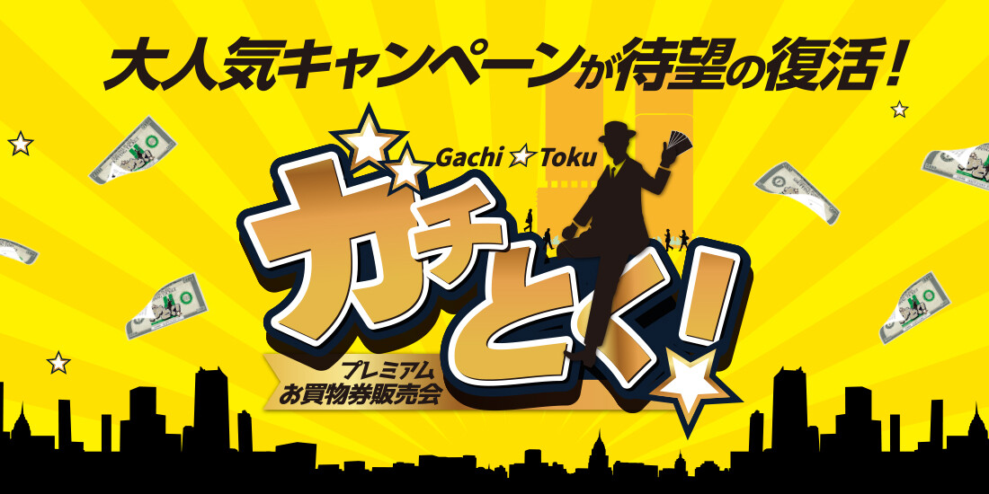 大人気キャンペーン「ガチとく!」が待望の復活!5,000円分のお買い物券を3,000円で販売するプレミアムお買い物券販売会を開催いたします。2月25日~27日の限定販売です。
