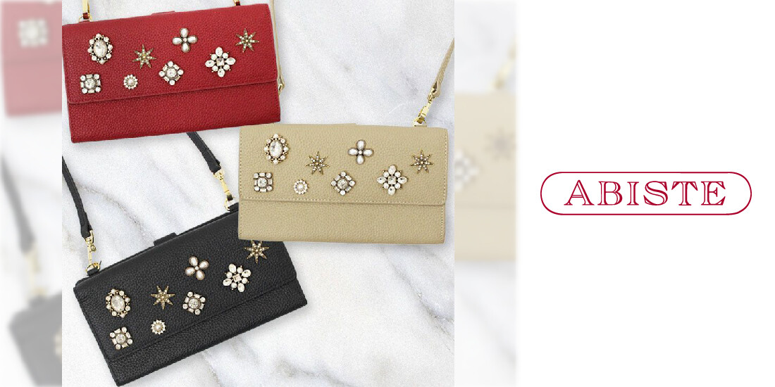 ビジューストーンがおしゃれで機能的なショルダーバッグです。