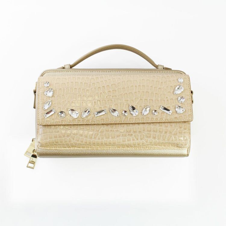 ガラスストーンのビジューがキラキラ華やかで、季節問わずお使いいただけます。